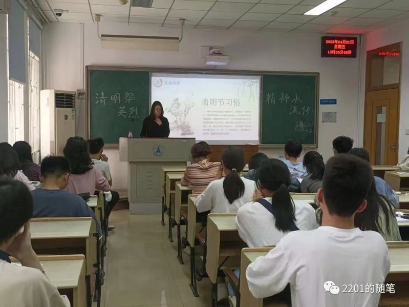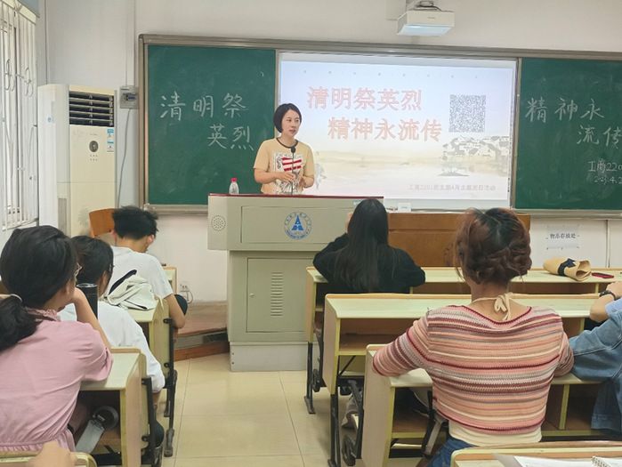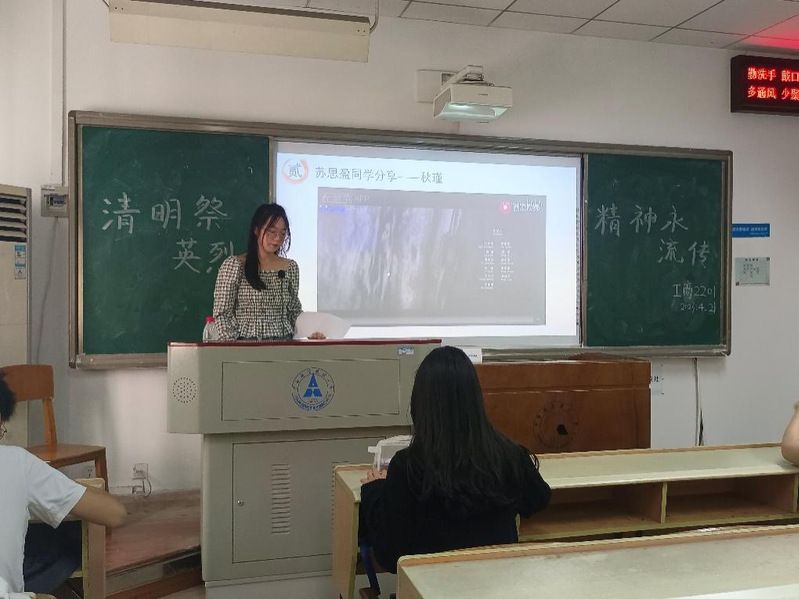 (通讯员黄欣卉陆宇涵)“清明节,又称踏青节、行清节、三月节、祭祖节等,节期在仲春与暮春之交。”清明节源自上古时代的祖先信仰与春祭礼俗,兼具自然与人文两大内涵,既是自然节气点,也是传统节日。为促进同学们对中国传统文化的了解与对先烈精神的传承,鼓励号召全体同学深入学习英烈事迹,肩负新时代青年的担当责任,4月21日下午,工商管理学院工商2201团支部于文泽103召开了4月“清明祭英烈,精神永流传”主题团日活动。工商2201团支书陆宇涵同学主持了本次活动,辅导员水晶晶老师出席活动。