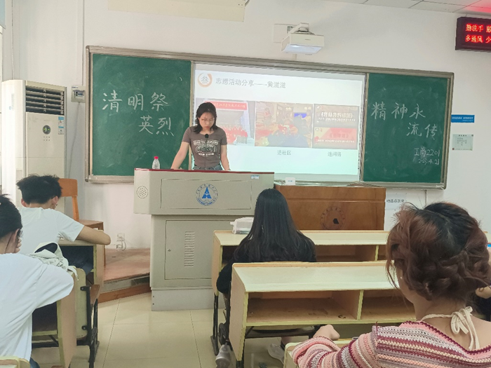 (通讯员黄欣卉陆宇涵)“清明节,又称踏青节、行清节、三月节、祭祖节等,节期在仲春与暮春之交。”清明节源自上古时代的祖先信仰与春祭礼俗,兼具自然与人文两大内涵,既是自然节气点,也是传统节日。为促进同学们对中国传统文化的了解与对先烈精神的传承,鼓励号召全体同学深入学习英烈事迹,肩负新时代青年的担当责任,4月21日下午,工商管理学院工商2201团支部于文泽103召开了4月“清明祭英烈,精神永流传”主题团日活动。工商2201团支书陆宇涵同学主持了本次活动,辅导员水晶晶老师出席活动。