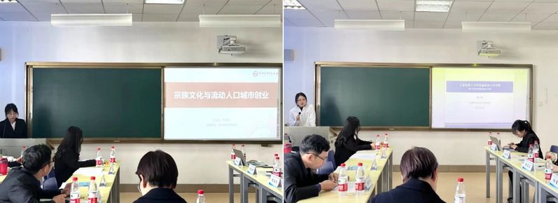 在会议的下半场,首都经济贸易大学的博士研究生尚佳佳就其论文《宗族文化与流动人口城市创业》进行观点阐释,她指出宗族文化通过家乡社会网络促进流动人口做出创业选择,通过形成短半径信任阻碍创业效果,而城市开放削弱了对创业行为的负向影响。中南财经政法大学的硕士研究生周文倩分享了题为《工业机器人与中国省际收入不平等——基于结构模型的量化分析》的论文,基于动力跨区域迁移和开放性框架探究了工业机器人对中国不同省份收入水平的影响,揭示了工业机器人对改变中国收入不平等格局的机遇和挑战。