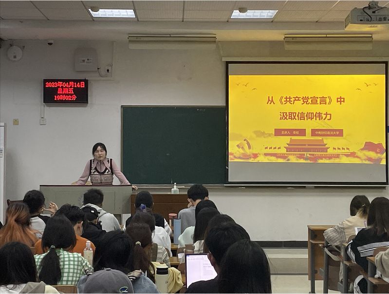 马克思主义学院荣枢副教授讲授第四课。她以《从〈共产党宣言〉中汲取信仰伟力》为题,从《共产党宣言》的写作背景和传播、《共产党宣言》的主要内容、《从〈共产党宣言〉中汲取信仰伟力》展开讲述。她指出,《共产党宣言》的发表标志着科学社会主义的诞生,为无产阶级的解放事业提供了伟大的理论武器,《共产党宣言》在中国的传播为中国的新民主主义革命提供了理论指导。《共产党宣言》的主要内容包括七篇序言和四章正文:资产者与无产者、无产者与共产党人、社会主义的和共产主义的文献和共产党人对各种反对党派的态度。