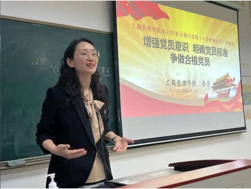 工商管理学院党委副书记李芳讲授第三课。她以《明确党员标准争做合格党员》为主题,从党员意识培养、合格共产党员、“两学一做”三个主题展开讲述。她指出,党员是党的肌体细胞和行为主体,是组成党的最基本要素,党员需要满足客观条件、主观意愿和质的规定。因而当代青年应当牢记党的教诲,扣好人生第一粒扣子,提高理论素养、培养党性素养、坚定理想信念、筑牢宗旨观念,全面践行党的要求。不仅如此,更要与时俱进、全面践行,深刻领悟“两个确立”的决定性意义、增强“四个意识”、坚定“四个自信”,争做踔厉奋发的新时代青年。