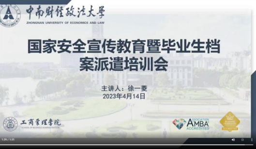 同日,工商管理学院2020级全体硕士研究生线上举行了由研究生辅导员徐一菱老师主讲的国家安全宣传教育班会。本次班会围绕“宣传全民国家安全教育日”、“树立国家安全意识”、“保守国家秘密法”、“安全知识普及”等内容,结合校园安全、人身安全等规章制度进行拓展延伸,开展宣传、教育、学习。通过这次学习,进一步加强了同学们的国家安全意识,让大家更深入地了解了涉及国家安全的法律法规,切实提高了学生主动维护国家安全的责任感和使命感。