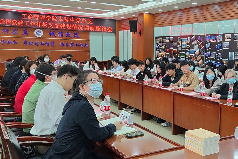 (通讯员宦惠子 李姚心然 徐若冰)为深入开展学习贯彻习近平新时代中国特色社会主义思想主题教育,坚持问题导向,扎实推进调查研究工作,推动“全国党建工作样板支部”培育创建,以高质量党建推动高质量发展。5月10日上午,工商管理学院本科生党总支在文泉楼北506会议室开展座谈调研,对标支部建设的“七个有力”,共同探讨提高基层学生党支部建设质量。学院党委副书记兼本科生党总支书记李芳和本科各党支部书记、党支部委员及学生党员代表参会。会议由本科生党总支副支部书记水晶晶老师主持。