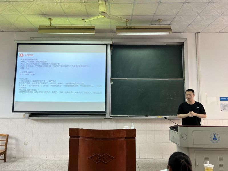 王世元师兄讲述了自己大学四年心路历程,分享各阶段同学可能产生的情绪心态,在场同学纷纷表示认同。师兄还从备战考研方面,向同学们介绍了一些学习干货,例如学习软件、学习博主等,同时师兄分享了自己的学习方法,激励同学们努力学习、扎实基础。