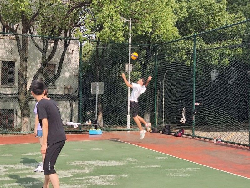 决胜局,工商2206班率先拉大比分扩大优势,随后出现失误,球权交至工商2203班,场上比分14:9,工商2206班手握5个局点。工商2203班的金泽昊发球,球抛起,击打,平且快地朝向对方场地,对方球员接球后,球飞至场外,连续得分!工商2203班的队员也将对方接过来的球稳稳撑起,继续得分,最终工商2203班反超比分,挺进决赛。