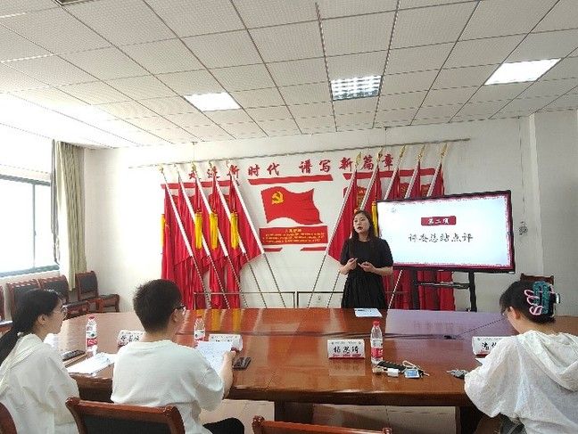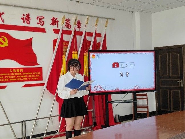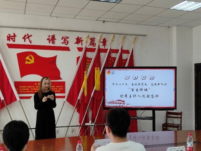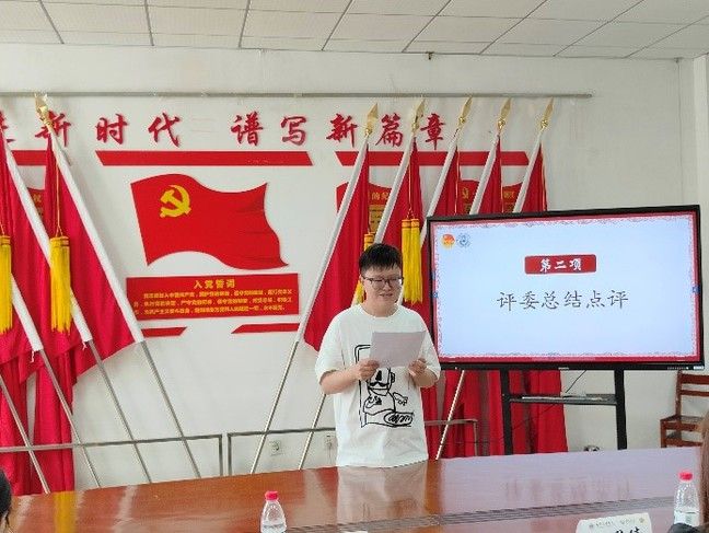 接下来是优秀主讲人答辩环节,首先登场的是来自工商2205班的姚文颖同学,他回顾了党成立来的三件历史性大事,号召新青年们在新时代要有所作为。来自旅管2201的薛曾同学呼吁青年人走好“脚下路”,齐心协力,一心向前。国贸2101的苗晟泽同学则结合自己加入“美美窟艺”的经历,从文化自信的角度出发,呼吁青年为文化自信注入一份力量。
