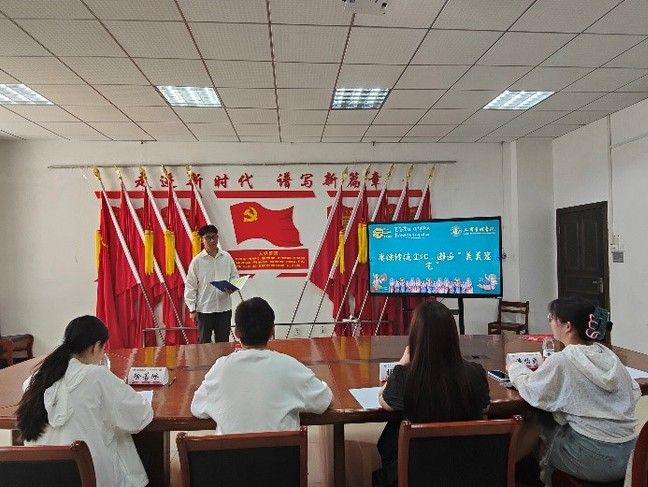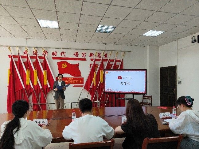 (通讯员 陈一 华梓涵)为全面贯彻党的二十大精神,坚持用习近平新时代中国特色社会主义思想武装头脑、引领青年学生,我院分团委组织部视频展示+演讲的方式,于5月27日中午12:30在文泉楼北307会议室举办“学习二十大,永远跟党走,奋进新征程”优秀主讲人推选活动。我院分团委书记何强老师、2021级辅导员杨思琦老师、2019级辅导员徐若冰老师和我院分团委学生副书记潘怡婷担任评委出席了本次答辩会,并由组织部干事阿克叶尔克担任主持人。