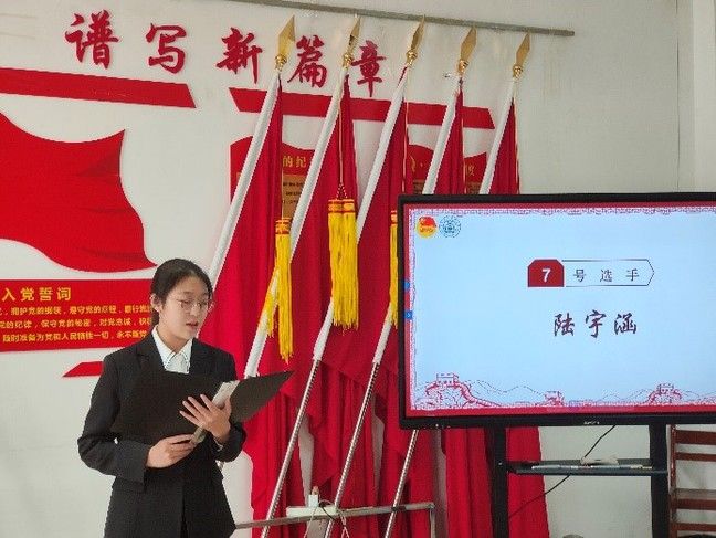 工商2204的刘馨忆同学饱含深情,以中国式现代化为切入点,回顾了中国发展成就,鼓励新青年们不懈奋斗,砥砺前行。工商2201班的傅婉清同学则结合师兄师姐的优秀事例,号召同学们向榜样看齐,志存高远,脚踏实地。