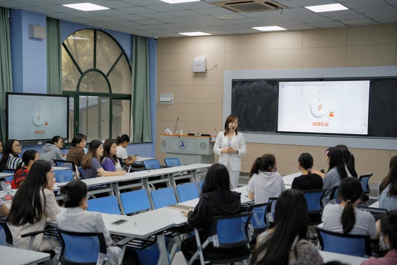 在介绍会议座次礼仪与乘车礼仪时,黄洁莉老师利用丰富形象的贴图,为同学们讲述了怎样在不同场合中合理地安排会议座次和在面对不同车型时应该如何进行乘车。紧接着,在微信礼仪方面,黄洁莉老师首先通过询问同学们在微信社交中有哪些行为是不恰当的,进而通过同学们的回答,为同学们讲解了一系列有关微信礼仪方面的内容。例如当提交交友申请时,申请要简短、有力,清晰地表明来意;在加完好友后,要向对方致以简单的问候,切忌加完好友就“销声匿迹”;我们还要善用朋友圈,利用朋友圈展现专业技能与个人精神面貌。