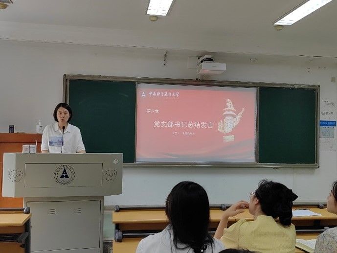 水晶晶老师结合党支部参加学院第三届学生党支部风采大赛的情况,回顾了支部成员在比赛前期精益求精、悉心准备的认真态度,肯定了参赛选手在讲党课、知识竞答、风采展示优异的表现。