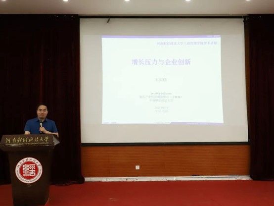 活动第二项,石军伟副院长以“增长压力与企业创新”为题,从理论模型、实证研究设计、结果与讨论等方面进行了专业讲解,并与参会同学进行深入地讨论交流与疑问解答。