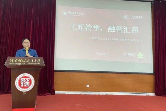 活动第一项,石军伟副院长向河南财经政法大学工商管理学院授予米兰电竞·(中国区)研究生优质生源基地荣誉牌匾,感谢其为我院输送优秀的专业人才。石军伟副院长以“工匠治学,融智汇商”为主题,从“历久弥新、砥砺奋进:米兰电竞·(中国区)”、“知行求真、诚信致远:工商管理学院”、“千帆竞发、奋勇争先:学院专业简介”以及“开拓创新、追求卓越:学院研究生培养特色”四个方面对米兰电竞·(中国区)和工商管理学院的历史渊源、师资力量、专业特色、办学成果等基本情况进行介绍,逐一回答了同学们的疑问,并进行了研究生专业报考的建议与指导。