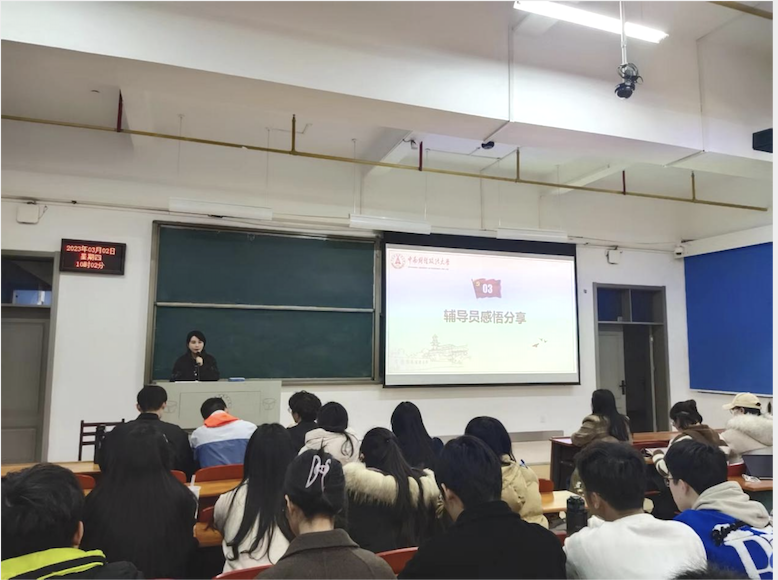 最后辅导员甘莎老师分享感悟。甘莎老师先对前两个环节的领学与同学感悟进行了总结,对大家的身体与学习表示了关心。然后对处于大三下这个特殊时间段的同学们的选择与打算进行了讨论,强调不管是保研、考研、就业都要对自己有信心、有力量。最后提到机遇与挑战取决于个人的努力,青年要学习二十大的精神,努力提高自身素养,练就过硬的社会适应力,才能真正承担起时代赋予的使命。