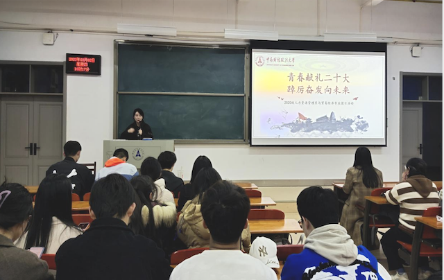 (通讯员 张金燕)为深入学习领会二十大精神,营造良好开端,工商管理学院2020级本科生贸经2001、人力2001、人力2002班开学班会于2023年3月2日在南附201教室七点顺利召开。会议围绕《青春献礼二十大,踔厉奋发向未来》的主题顺利展开,主要分为三项议程,历时一个小时。