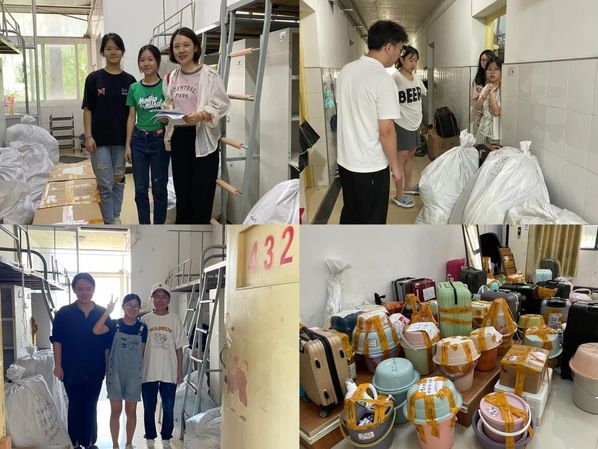 6月28日,同学们根据先前开展的打包行李培训,对各自相关的行李与易碎品进行了统一标准的整理与打包。在打包过程中,搬家先锋队的同学也起到了带头模范作用,主动地对打包存在困难的同学提供帮助,并对同学们打包的行李进行多次地验收检查与数量清点。辅导员水晶晶老师、刘振兴老师前往26栋女生宿舍与33栋男生宿舍,对同学们打包行李的规范与宿舍的水电安全进行最后的检查与核对,保障搬家工作的顺利进行。当天上午12点左右,600多名同学的行李交接给黄蚂蚁搬家公司,同学们收拾干净宿舍后离校。