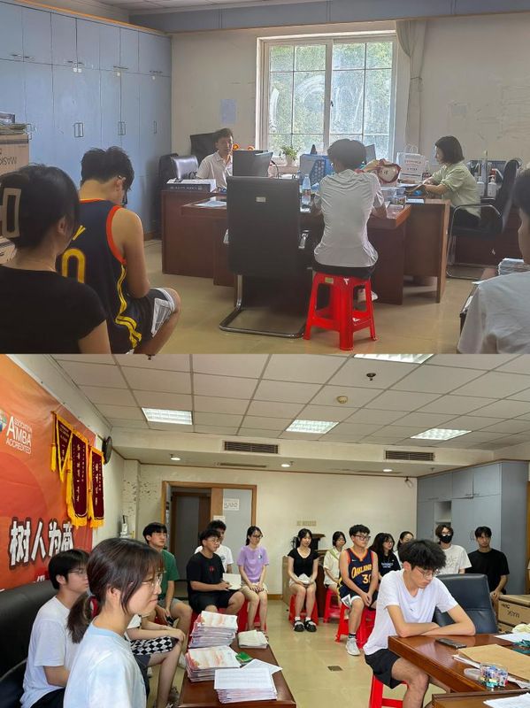 工商管理学院2022级本科生共有613名学生,接到搬迁任务以来,年级制定详细的搬家工作方案,成立专门的搬迁工作小组,多次就宿舍分配、行李打包等问题以线上、线下多种形式组织了相关会议与培训。为了保障搬迁工作的顺利进行,学院还组织了一支由学生干部和入党积极分子组成的搬家先锋队。同时,年级专门于中南楼202办公室召开了搬迁工作协调会,收集了同学们对搬迁工作仍存在的疑问并作出相应解答,讨论了搬运的具体细节以及搬运过程中可能出现的问题,对搬家方案进行修改与完善,确保前期准备工作尽善尽美。