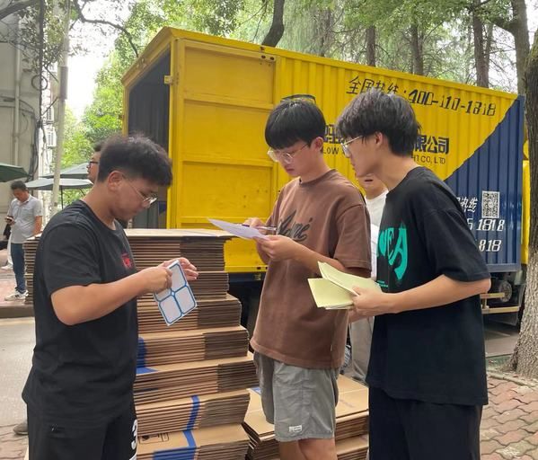 8月25日,搬家先锋队的志愿者兵分两路,一部分前往首义校区,对易碎品进行整理装车。一部分在南湖校区进行易碎品的卸车,并将易碎品搬运至对应宿舍。在装卸与搬运易碎品的过程中,搬家志愿者们悉心竭力,小心翼翼地搬运每一个易碎品,确保在搬运过程中易碎品的完整。男生们还主动帮助女生转运易碎物品,女生们也互相帮助,按楼层分别进行行李的运送,展现出了工商学子的团结互助精神。也正是因此,不仅搬迁进度得到了大大加快,更增进了同学间的情谊。