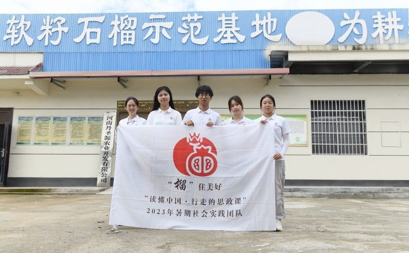 在团县委、县林业局、县林果发展中心等部门的支持下,该实践队深入当地最具代表性的三家软籽石榴基地——九重镇仁和康源软籽石榴基地,盛湾镇榴博士软籽石榴基地,老城镇豫淅红软籽石榴基地展开调研。通过和政府有关部门一起召开座谈会,采访村支部书记、产业投资人、当地创业者、受益农户,来到田间地头查看石榴管护和生产车间深加工情况等各种方式,获取最真实的产业信息,感受作为乡村支柱产业发展的艰辛以及从中反映出当地人民的勤劳与智慧。