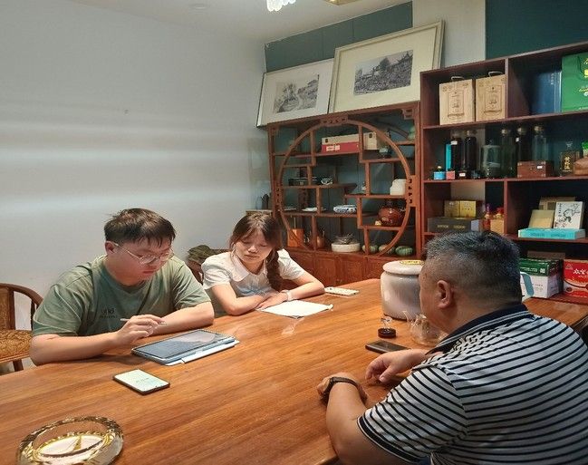 队员邵子逸和董妍廷与汪永安先生进行访谈