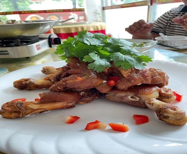 随后,在汪永安先生的带领下,我们药食膳社会实践小分队前往领康中草药材有限公司旗下的黄精酥肉馆就餐。在就餐时,汪永安先生为我们详细介绍了每一道黄精药膳菜所含的药材成分和制作过程,以及各种药膳的功效和作用。比如黄精排骨汤有清热补气养阴的功效,黄精猪蹄花有美容润肺的功效……就餐完毕后,药食膳社会实践小分队在领康黄精体验馆前合影留念,此次崇阳县调研圆满结束。