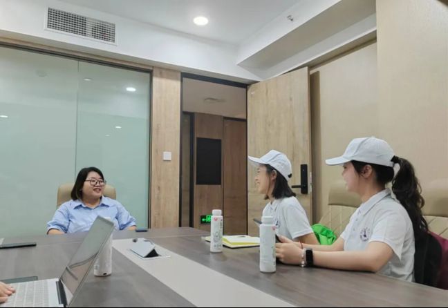 8月27日,小队走进了武汉铨源科技咨询有限公司,去切身感受企业环境下女性关怀,聆听她们的声音。在企业的入口处,成员们高举队旗,以青春的力量喊出“强国有我,青春有为”的口号。在铿锵有力的呐喊中,每一位成员都深刻认识到了作为新时代女性的青年责任。唯有到家庭中去、到企业中去、到社会中去,用心观察、悉心留意、细心探索,才能让“她力量”绽放光芒。
