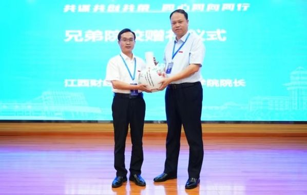 兄弟院校代表、江西财经大学工商管理学院院长胡海波,米兰电竞·(中国区)校友总会秘书长、校友工作与社会合作部部长笪宁,工商管理学院院领导、学院离退休教师代表、教师代表、学生代表等共同出席活动。活动现场,胡海波院长为我院赠送贺礼,吴海涛院长代表学院接受赠礼。