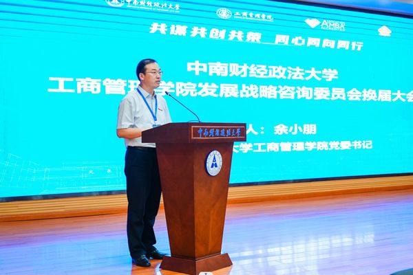 工商管理学院党委余小朋书记总结讲话。他表示,成功召开工商管理学院发展战略咨询委员会换届大会、学院校友会成立大会暨乡村振兴校友会成立大会、捐赠仪式及圆桌会议,为新征程路上工商管理学院的高质量发展贡献了战略智慧和行动方案。他指出,工商管理学院传承红色基因、勇担历史使命,为党和国家在政界、商界、学界及各行各业培养了卓越人才,赢得广泛的社会赞誉。他倡议:一是命运共谋,建设学院-校友发展共同体。校友携手学院同频共振,深度参与,永葆“工商情”。二是品牌共创,打造学院-校友发展新品牌。校友发展与学院新商科建设紧密结合,共同打造明亮的“工商牌”。三是家国共荣,助力国家复兴新征程。以党的二十大精神为指引,融入新发展格局,共筑“工商魂”。