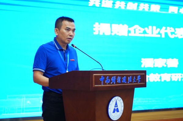 潘家善董事长代表捐赠校友企业发言。他创办湖北产教融合教育研究院,向母院捐赠100万现金和拥有自主知识产权价值200万的“硕果学堂”及“硕果论文管理平台”,表达对母院的培育之恩,希望同母院共建产教融合协同创新中心,打造支撑国家创新驱动发展和产业转型升级的高端人才培养体系,助力学院国际化建设。