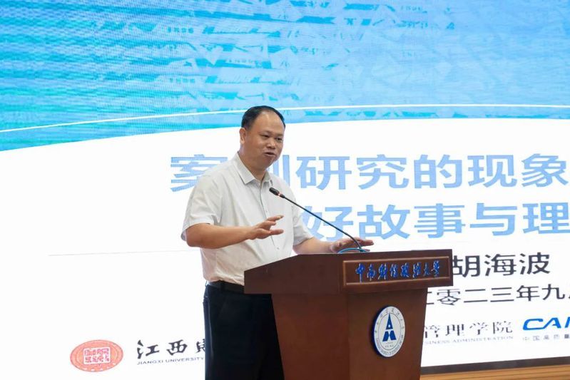 胡海波展开《案例研究的现象化概念:讲好故事与理论贡献》主题演讲。“现象概念化是案例研究中最为关键的一个环节,是链接案例故事与理论贡献的重要步骤”,他围绕现象概念化的前期积累、操作步骤、多元视角等内容,通过国际、国内相关案例,深入浅出地向与会学者、学子们展现现象概念化的实现过程与路径。