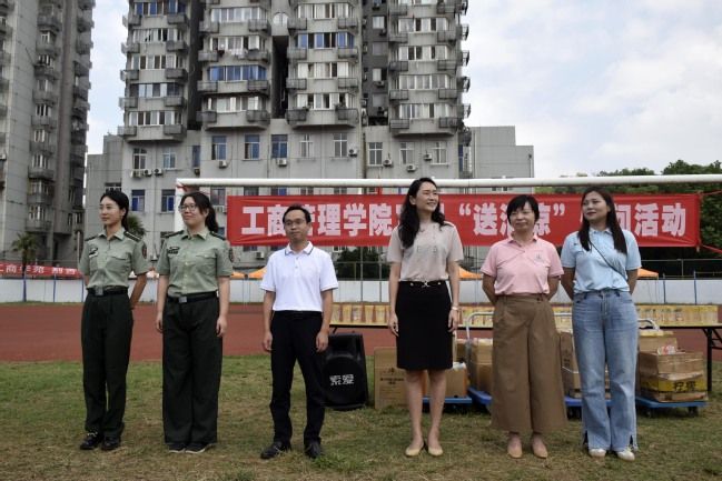 (通讯员 田安)荆楚热气长秋光,工商心系军训郎。即使步入金秋九月,荆楚大地欢迎新生的热情仍未褪去,军训气温依旧高涨,故工商管理学院于9月15日在首义校区大运场开展了以“凉意解暑,暖流盈心”为主题的军训送清凉活动,我院吴海涛院长、党委李芳副书记、学生工作办公室曾洁主任前往首义校区为2023级新生送去军训中的一份清凉。分团委书记何强老师、辅导员杨思琦老师、徐若冰老师和范梦宇老师共同参与本次活动。