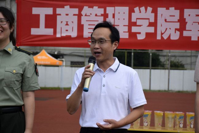 绿荫道上飒爽少年,铮铮誓言萦绕心间。漫长训练结束后,教官们整队集合。吴海涛院长亲自带领老师慰问每日不懈参训的同学们,其中提到的工商口号“工商工商,意志如钢,一马当先,唯我工商”,提醒了同学们求学之路需锻炼强大坚韧的意志力。“人生路上充满荆棘,只有奋力拼搏,才能迎来最后的曙光,品尝到成功的甘甜。”院长激励同学们的话语让学子们切实感受到属于工商管理学院的奋斗精神,引得在场同学士气燃燃。此后,领导老师们还为同学们送上了解渴的柠檬水,收获到同学们声声真诚道谢。