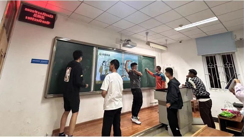 精彩的班会迎来了高潮,全体同学在班长陈睿杉同学组织下进行你画我猜和看图猜词的游戏环节。同学们两两组对,共同参与到游戏中,更深刻体会班会主题“敞开心扉,热爱生活”。同学们通过看图猜词的小游戏活跃气氛。大家踊跃参与,积极举手,现场气氛热烈,比赛激烈。最后,正确回答题目的同学获得了奖品。小游戏不仅使刚经历长假的同学有了进一步认识与熟悉,同时也达成了更强的班级凝聚力和团结力,让同学们打开心门,接纳彼此。