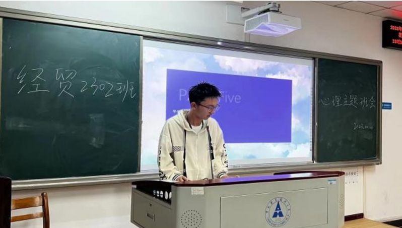 而后,心理委员张冯媛以“重新出发 从心出发”为题开启本次心理班会。在张冯媛的引导下,同学们就如何缓解学习、生活压力踊跃发言,针对如何调整心态进行充分讨论,并积极提出可行性建议。同学们在这一环节收获颇丰,对未来的大学生活充满期望。紧接着,由班长杜欣哲进行班级凝聚力教育,详细讲解班级构成、班级活动、日常要求等,着重强调请假流程、校规校纪问题,提醒同学们保持通信畅通。通过这一环节,班级凝聚力得到增强,班级管理得以规范。