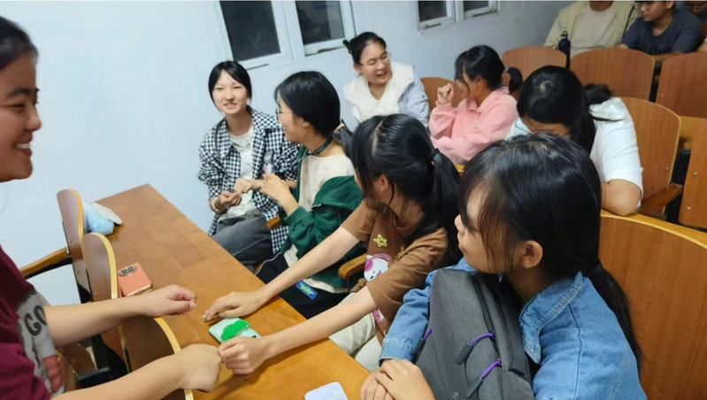 本次班会设计了“你画我猜”等等互动游戏,将学生们分成小组进行比赛。游戏中涉及人际交往、情感问题与适应能力等方面的词汇,让同学们在游戏中体验心理健康的重要性。游戏结束后,王小丹同学对各小组进行简短点评,以减弱同学之间的隔阂,增进彼此之间的了解。分组进行班级讨论,让同学们分享自己或身边人的经历,讨论如何在人际交往、情感问题和适应能力等方面进行自我调这一环节,鼓励同学们勇于发表自己的观点,勇于提出自己的建议。