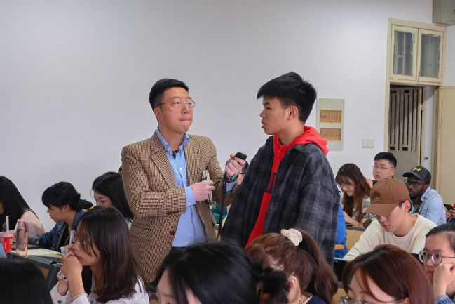讲座中途穿插互动环节,同学们积极与曾钧先生沟通,在当下高校毕业生就业困境等方面展开讨论。曾钧先生抽丝剥茧,为同学们作出了一针见血而又细致周到的回答。他鼓励同学们在求职的过程中有足够的底气,能够敢于谈判、善于谈判。现场气氛热烈,掌声不断。