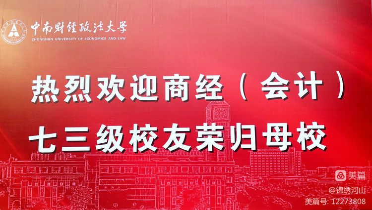 “热烈欢迎商经七三级校友荣归母校”的标语高高挂在青云桥头