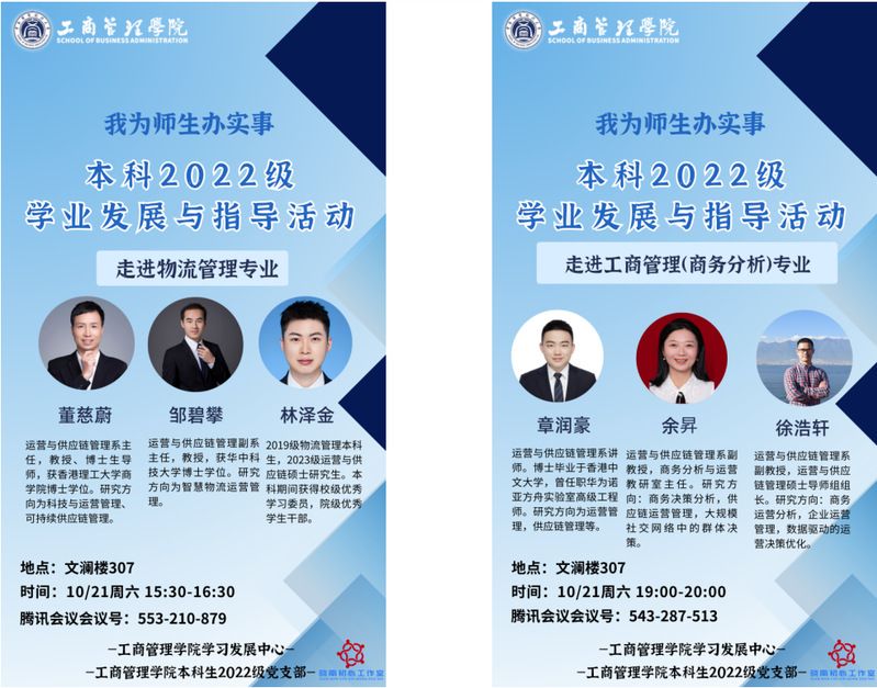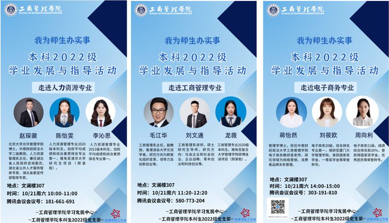 (通讯员 余立睿)为指导工商管理学院2022级本科生参与专业分流,帮助学生明确发展方向,10月19日-20日,学院各系各专业、学生学习发展中心、本科2022级党支部举办了“我为师生办实事-走进专业”主题活动,各专业教师骨干、优秀学生代表全面介绍学院各本科专业的具体情况,2022级本科生与家长通过线上和线下的方式参与活动。