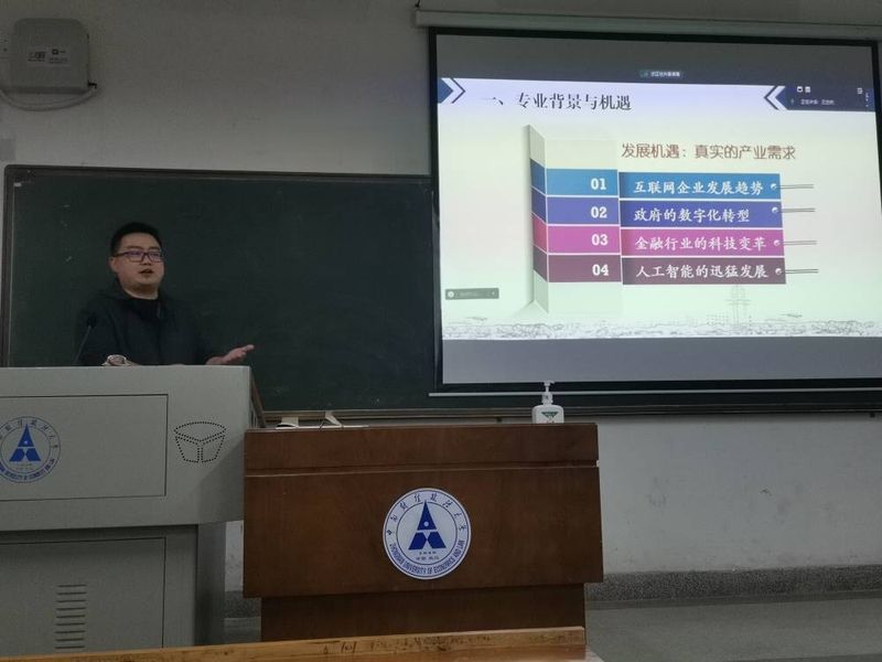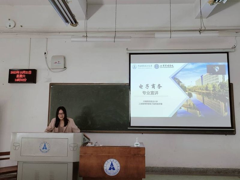 电子商务教研室蒋怡然老师介绍了电子商务专业的交叉学科性质,向同学们讲述了专业发展历史及人才培养目标,并指出电子商务专业未来就业方向广泛,具有较强的竞争优势。