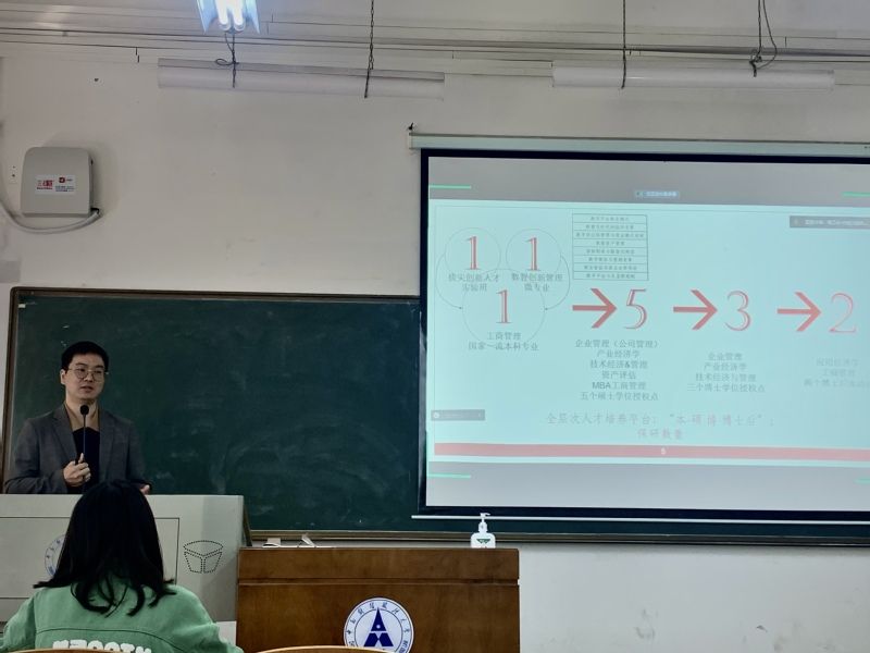接着工商管理系硕士研究生导师刘文通老师做进一步补充,他分享了自己曾经在专业选择上也犹豫不决,充分了解各类信息后选择了一条“康庄大道”——工商管理专业。并多次强调工商管理专业的综合性,鼓励同学们选择适合自己的专业。