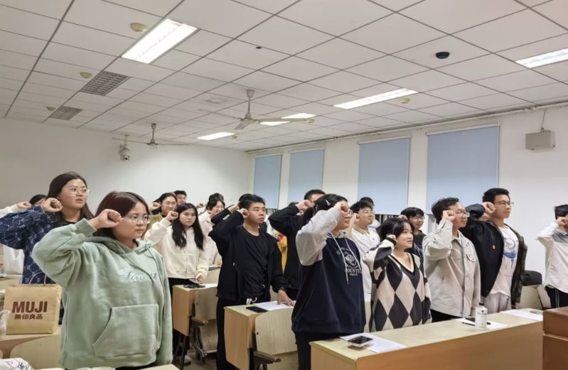 此次活动在富有激情和朝气的团歌声中拉开序幕,全体团员在团支书马安琪的带领下重温入团誓词。