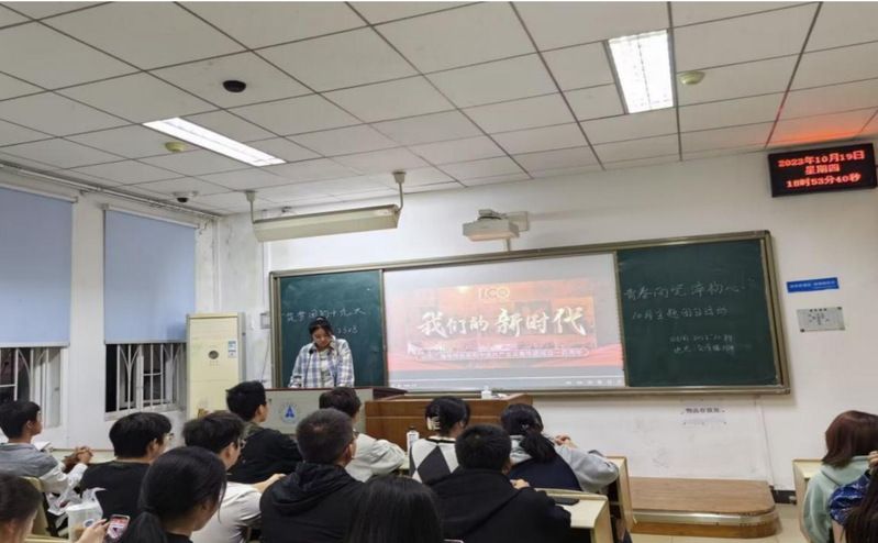 团支书马安琪为全体团员播放关于召开“中国共产主义青年团第十九次全国代表大会”的新闻视频,带领团员青年们学习团十九大精神。在此期间,团支书马安琪向团员青年们宣扬了中国共产主义青年团在新时代中国特色社会主义蓬勃发展的环境下,积极传承和弘扬团的光荣传统和优良作风,同时鼓励全体团员青年追寻党的奋斗历程,铭记党的丰功伟绩,不断发展不断进步。