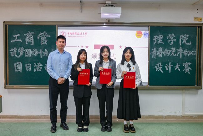 经过各团支部精彩的答辩与评委们认真地打分,工商实验2301团支部荣获一等奖。经贸2302团支部、工商2305团支部、工商2302团支部荣获二等奖。工商2303团支部、工商2307团支部、工商2301团支部、国贸实验2301团支部荣获三等奖。工商2308团支部、工商2304团支部、经贸2303团支部、农经2301团支部、工商2306团支部、经贸2301团支部、旅管2301荣获优秀奖。何强老师、郭小义老师、杨思琦老师和徐若冰老师分别为获奖团支部颁发证书并合影留念。