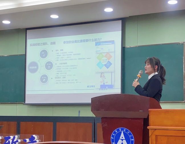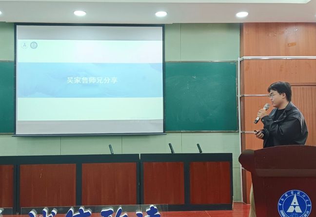 接下来,吴家鲁同学和龙敏妍同学概括大学生比赛的相关流程和主要内容,介绍自己在比赛中的经验。吴家鲁同学提出“以创新成就自己”,龙敏妍同学总结大学生应该“勇于尝试,看清要求,选好队友,找准角色,选题新颖,积极提问”的比赛模式。