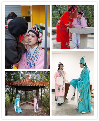 这次昆曲体验活动在王子超教师的班级展开,是该门课程“教学改革”的方式之一,属于32节课之外展开的中国传统文化体验和传承实践。王子超老师自费购买了昆曲的专业服饰等行头,并为同学们提供了现场文化指导。自2023年11月中旬开始,师生们利用工作或学习之余的时间,每周末在我校南湖校区北门的中山亭、环湖湖上廊道、艺体中心等地进行昆曲经典曲目的表演和拍摄。一共有八个小组参与了活动,每个组由13人组成,成员们分任编剧、演员、导演、化妆师、造型师、动作指导、摄影师、剪辑师和安保。拍摄的剧本包括经典的《牡丹亭》、《西厢记》、《桃花扇》。同学们积极报名,各人都充分发挥了自己的想象力和创造力。演员们来自工商管理、金融学、法学、统计学、计算机科学等很多专业,都没有任何戏曲表演的经历。但是在王老师的课堂讲解和启发下,在寝室仔细研究昆曲台本、模仿名家演员动作,在表演时也能像模像样、古典气息十足。至于导演、编剧、摄影师们,更是群策群力,通力合作,共同打造出了一出出昆曲大戏。