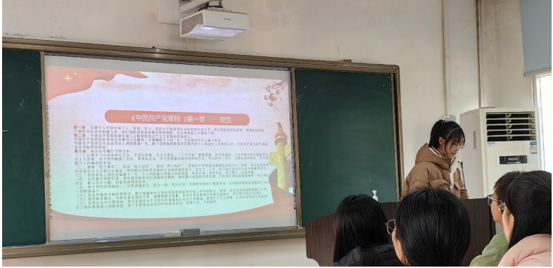 活动第二项,孙韵如同志领学《中国共产党章程》第一章。全体入党积极分子共同学习中国共产党党员申请入党的条件,中国共产党党员的义务与权利,中国共产党党员的性质,入党程序,入党宣誓,预备党员,组织程序,退党程序等相关内容。深化入党积极分子对党的章程的学习和理解,为日后更好地开展培养教育工作奠定良好基础。
