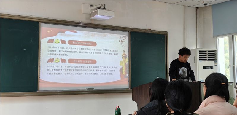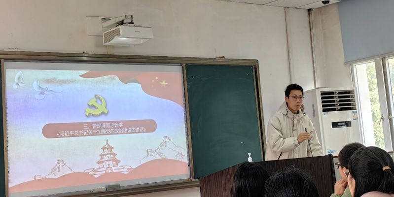 活动第一项,党支部书记何强老师作主题党日工作部署及入党积极分子培养教育工作安排。明确入党积极分子培养考察机制与要求以及日后需要参与党支部活动部署安排,同时介绍工商管理学院特色“读讲行”培养方案。对2023级入党积极分子提出具体要求、寄予殷切期望。