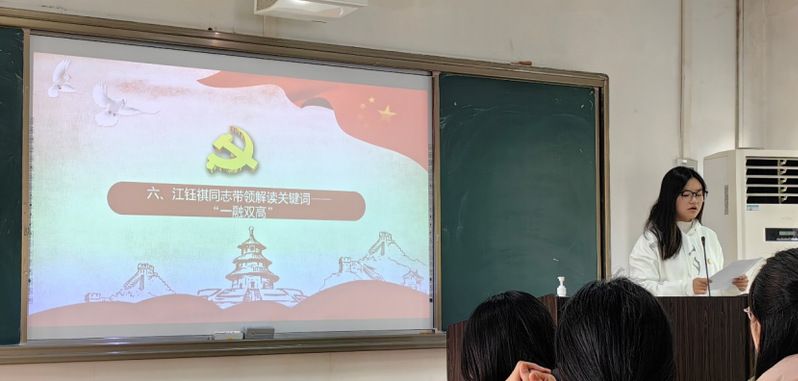 活动第六项,江钰祺同志带领解读关键词——“一融双高”。解读了“党建工作一融双高是指在党的建设和治理中,通过优化组织结构、完善制度体系、提高治理效能等方面的融合。”她结合我校党建工作优秀事例,解读“一融双高”,促进对党建工作关键词“一融双高”的理解,推动大家与发展同频共振,为进步同向发力。