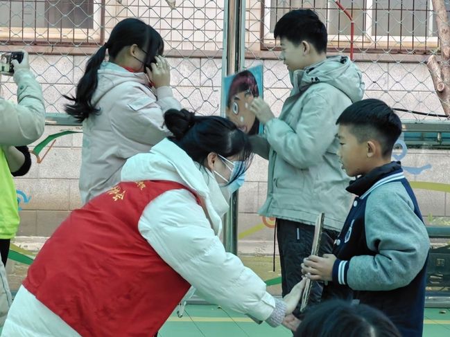 游戏欢乐多,魔术惊奇现。节目表演结束后,让孩子们无比兴奋的游戏环节马上开始。小孩与志愿者进行拼图对决时,双方争分夺秒地寻找合适的拼图碎片,又绞尽脑汁将其放置到正确位置。持续焦灼对决后,最终是小孩们骄傲地举起手示意率先完成。进行至“默契大考验”游戏时,志愿者领着孩子们灵巧地复刻出规定的动作姿势,动作变换间,孩子们努力的可爱模样逗乐了现场的每一个人。压轴出场的是一位老师妙趣横生的魔术表演。凭空出现的棉花糖、红蓝变换的水杯以及小木棍里开出的花朵,牵动着孩子们的好奇心,也赢得了他们的声声喝彩。