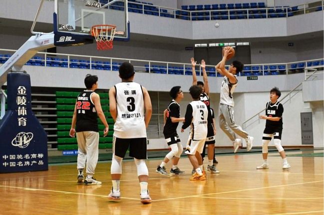 时间才刚到13:30,艺体篮球场就响起运球声和脚步声,两队都早早到达,开始细致地安排战术。在紧锣密鼓的热身训练后,时间来到了14:00,总决赛准时开始。在最后的赛场上一决高下的两支队伍分别为农经2201班、旅管2101班、经贸2101班联队(下称联队六)与国贸2101班、国贸2102班联队(下称联队七)。