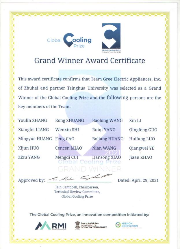 (2021年格力“零碳源”空调系统获全球制冷创新大奖赛最高奖)